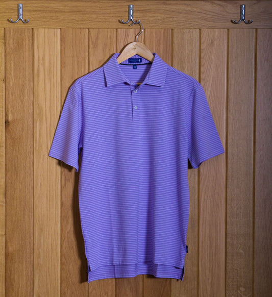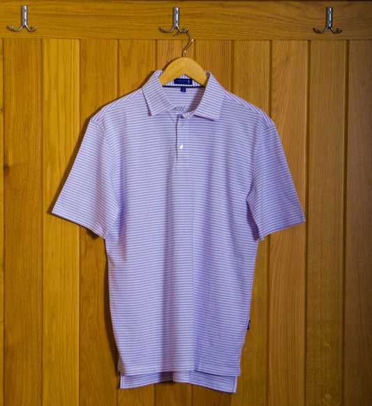Dornoch Pima Cotton Medium Polo Stripe Shirt: Mauve & White