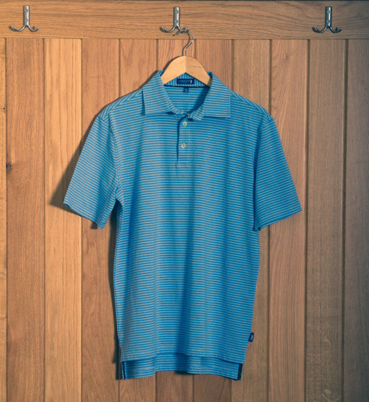 Dornoch Pima Cotton Medium Polo Stripe Shirt: Blue & White