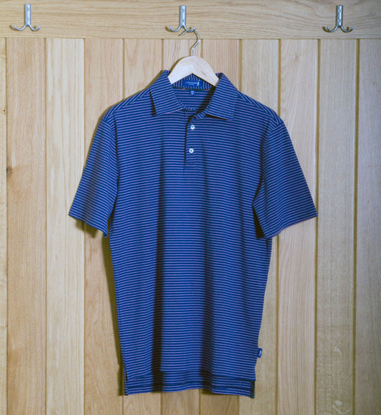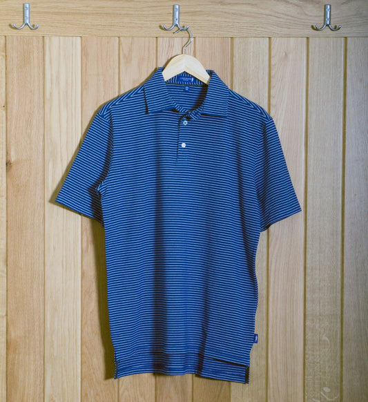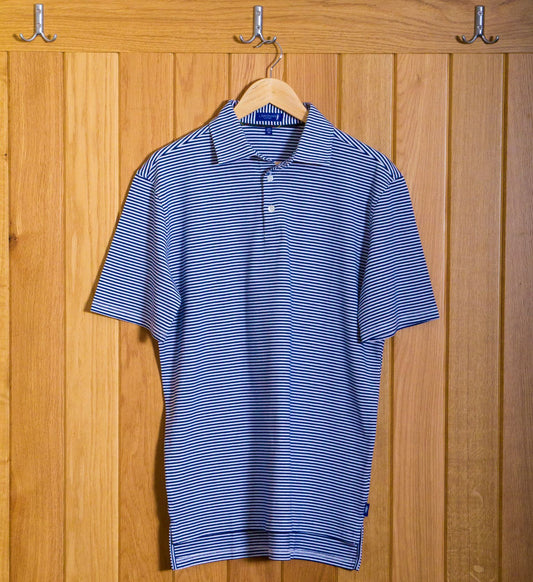 Dornoch Pima Cotton Medium Stripe Polo Shirt: Navy & White