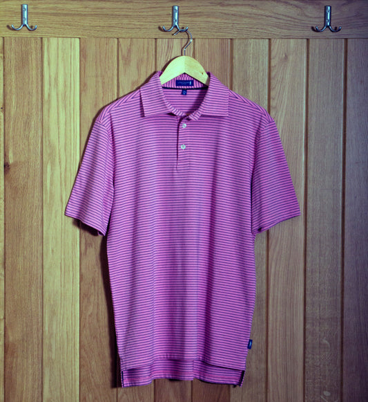 Gullane Pima Cotton Pencil Stripe Polo Shirt: Pink & Navy