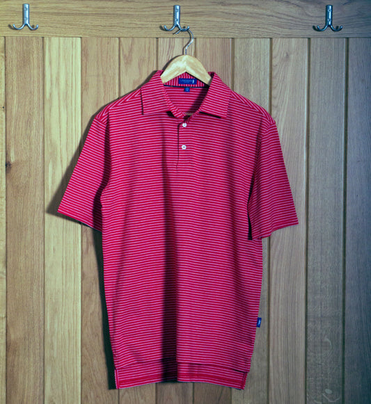 Dornoch Pima Cotton Medium Stripe Polo Shirt: Red & White