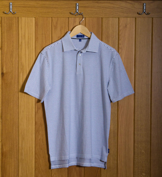 Gullane Pima Cotton Pencil Stripe Polo Shirt: White & Navy